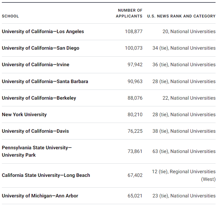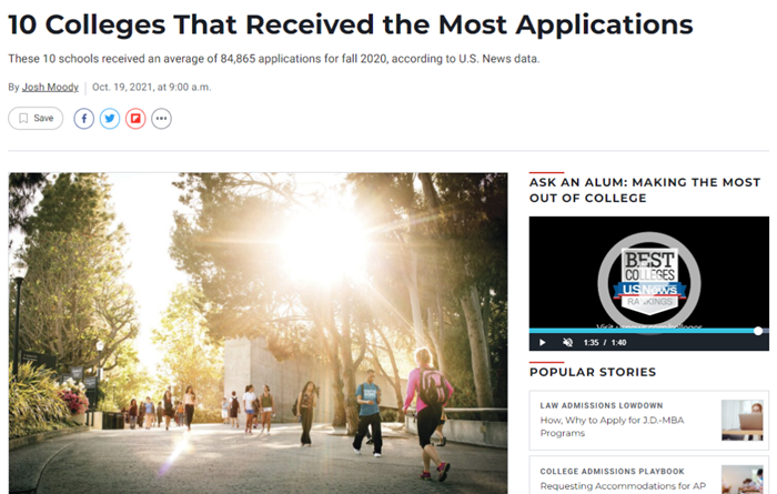 常春藤联盟校无论在美国还是在中国都有着非常高的名气,并且藤校的竞争也更是出了名的激烈,每年申请季都会有数以万计的学生争夺这8所高校有限的入学名额。然而,相比藤校,美国的公立学校收到的申请数量却是占到了主导地位。