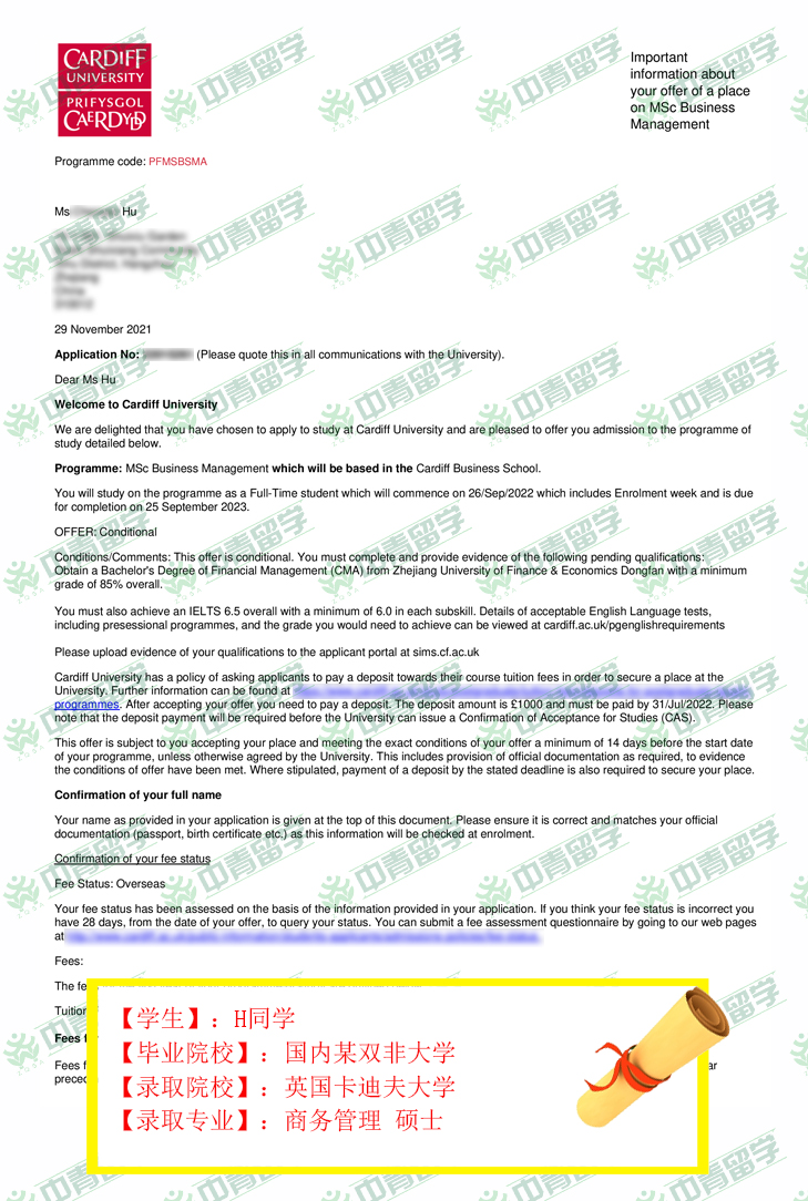 【录取院校】:英国卡迪夫大学