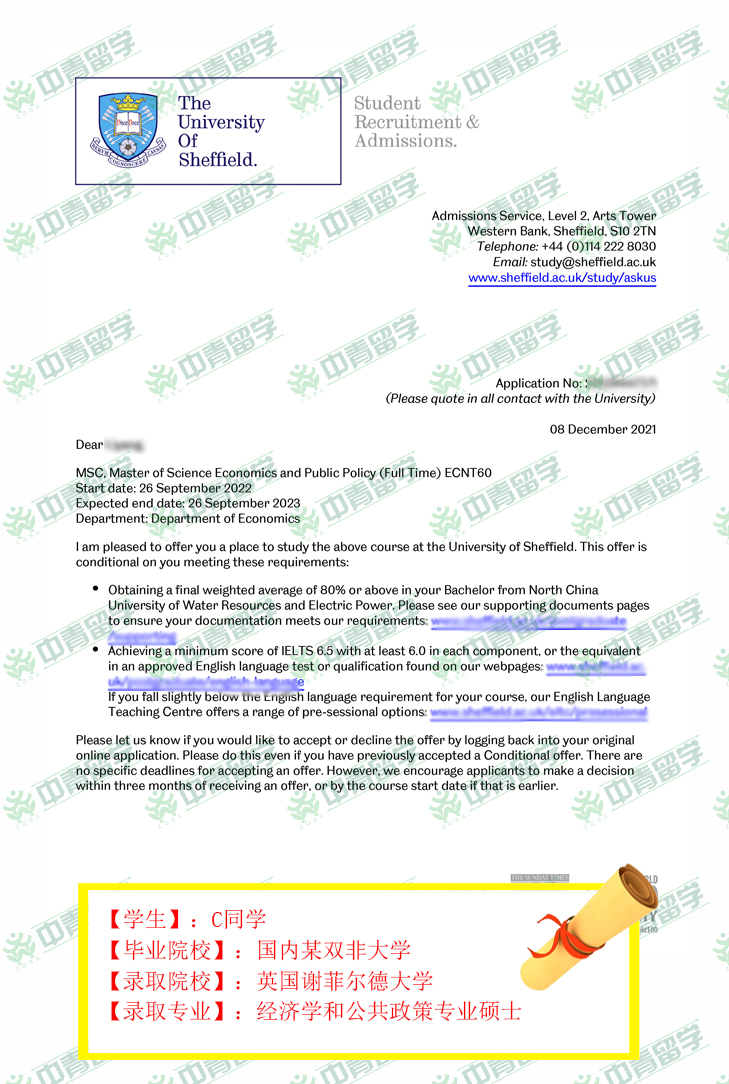 【录取院校】:英国谢菲尔德大学