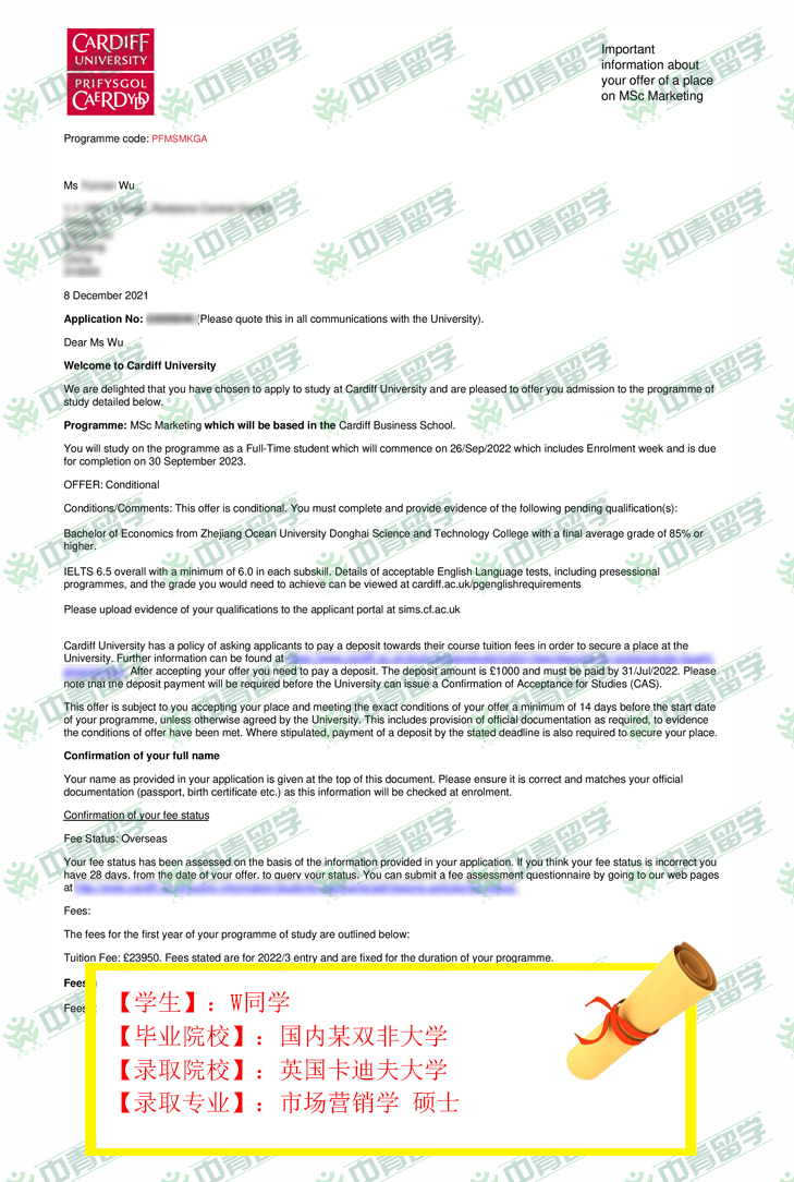 【录取院校】:英国卡迪夫大学
