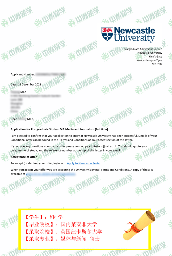 【录取院校】:英国纽卡斯尔大学