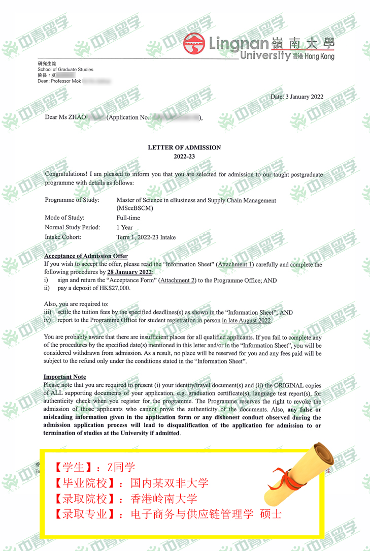 【录取院校】:香港岭南大学