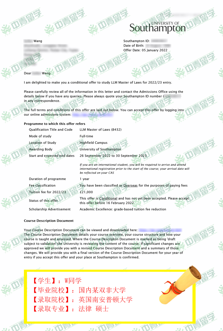 【录取院校】:英国南安普顿大学