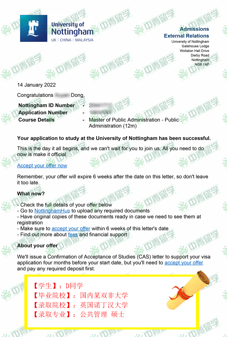 【录取院校】:英国诺丁汉大学