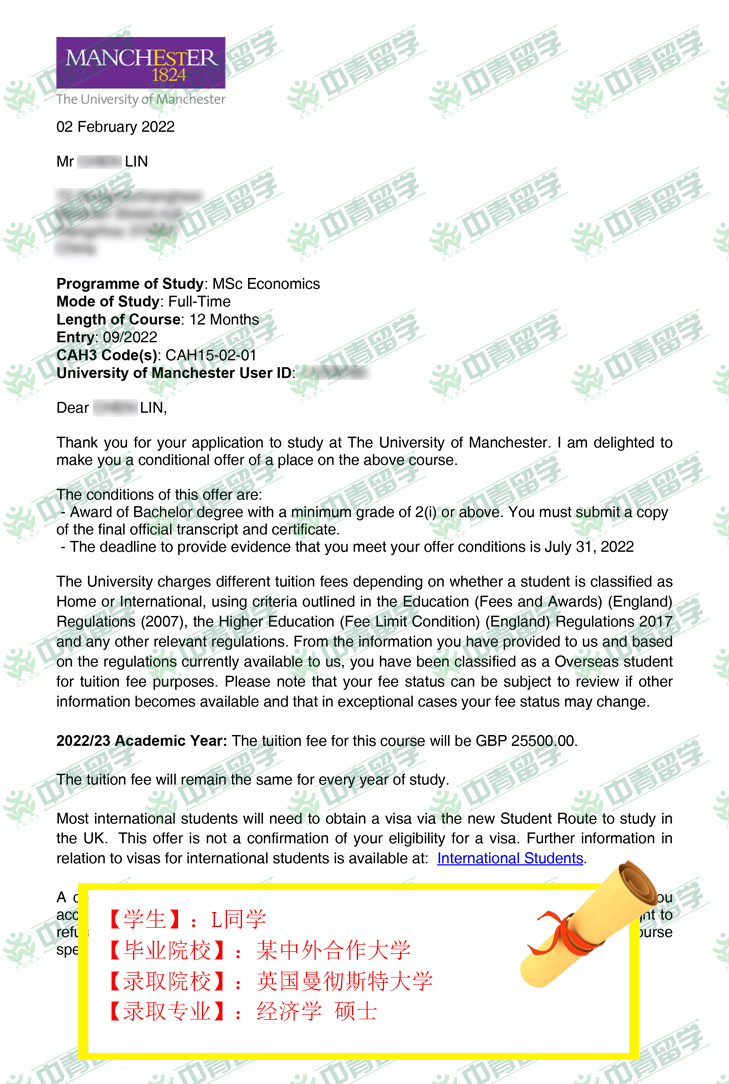 【录取院校】:英国曼彻斯特大学
