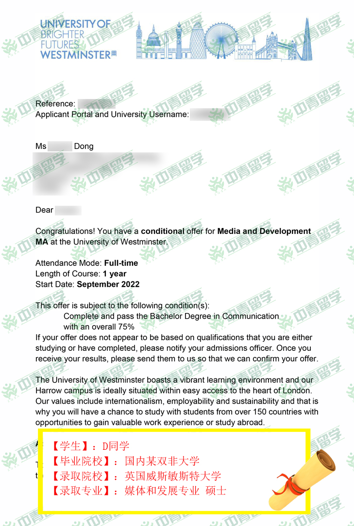 【录取院校】:英国威斯敏斯特大学
