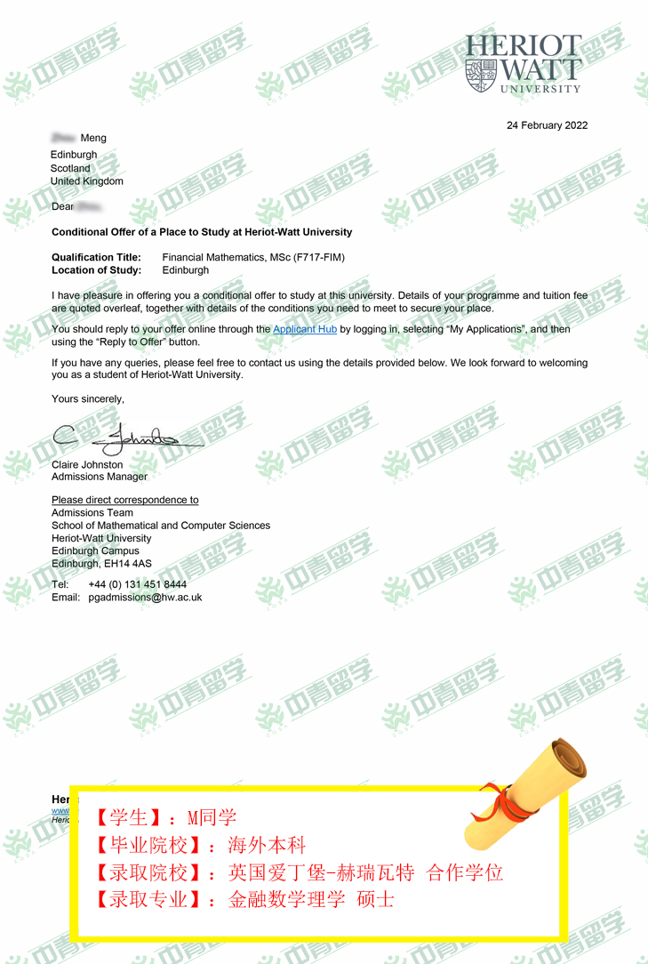 【录取院校】:英国爱丁堡-赫瑞瓦特 合作学位