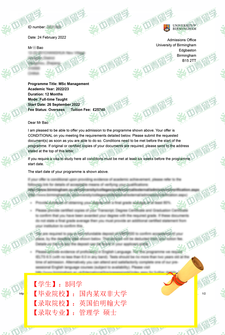 【录取院校】:英国伯明翰大学