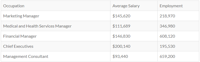 据统计,拥有MBA学位的人就业的薪资平均水平如下: