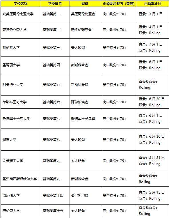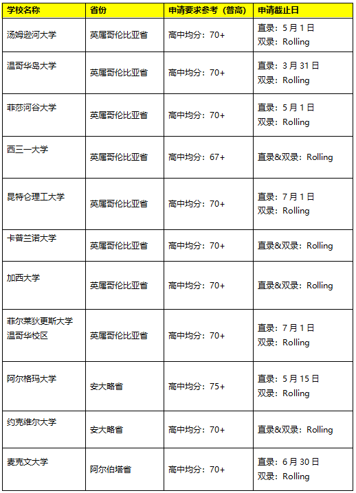 *各学校部分专业截止日期后如有余位,仍可继续递交申请,部分热门专业也有可能提前招满截止,以上信息仅供参考,请以官网更新为准