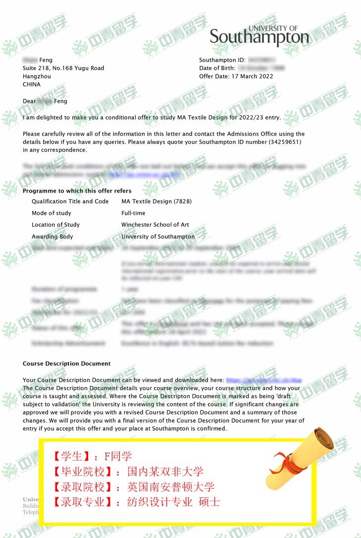 【录取院校】:英国南安普顿大学
