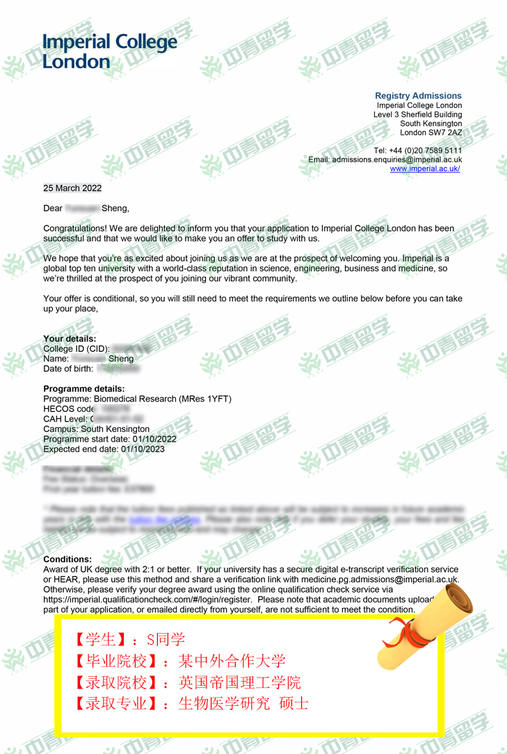 【录取院校】:英国帝国理工学院