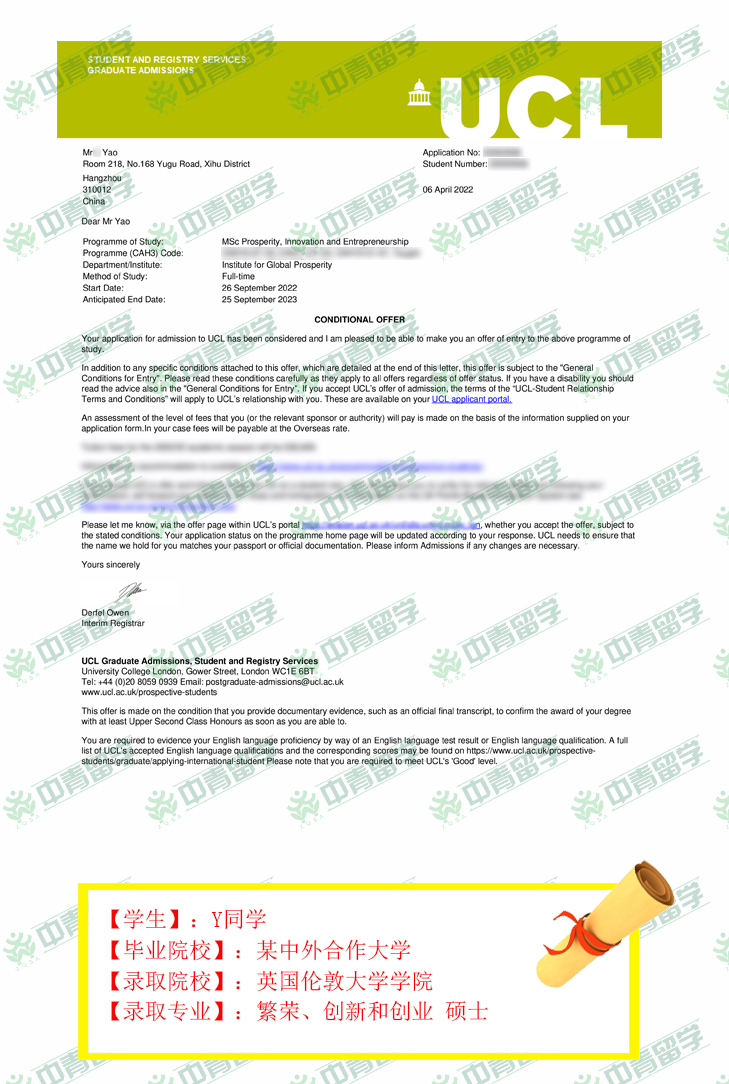【录取院校】:英国伦敦大学学院
