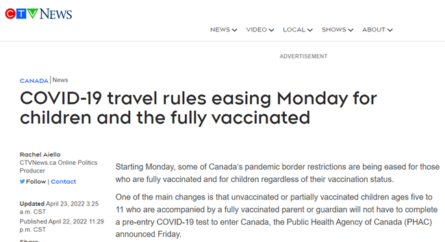 加拿大公共卫生署(PHAC)宣布,自美东时间 4 月 25 日凌晨 1 点起: