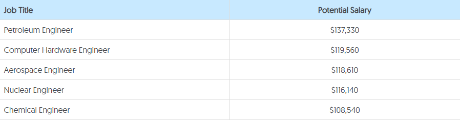 辛苦就会有收获,通常来说工程专业的毕业生享受到的薪资待遇还是非常可观的,比较热门的岗位和薪资如下: